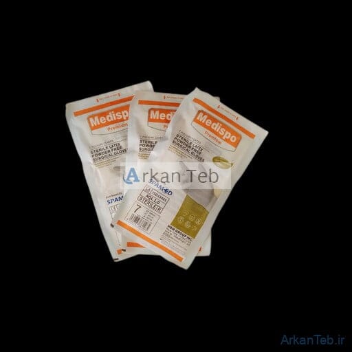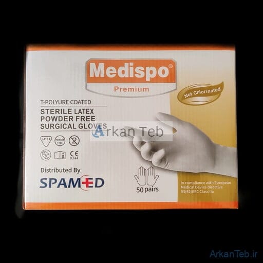 دستکش جراحی برند Medispo مدیسپو در سایز بندی استاندارد ، ساخته شده از جنس لاتکس طبیعی بدون پودر با قابلیت کشسانی بسیار بالا و مقاومت زیاد در برابر پارگی میباشد.