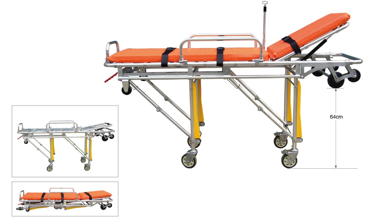 برانکارد پاچلاقی برای افزایش سرعت و راحتی انتقال بیمار ساخته شده از پروفیل آلومینیومی با مقاطع مستطیلی و لوله ای که استحکام و مقاومت مناسبی را ایجاد می کنند