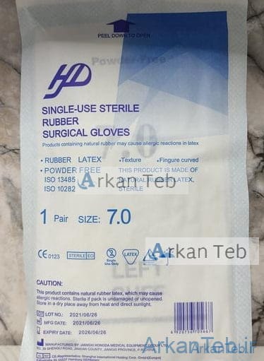 دستکش جراحی بدون پودر سایز ۷ برند HD: (تاریخ بلند)