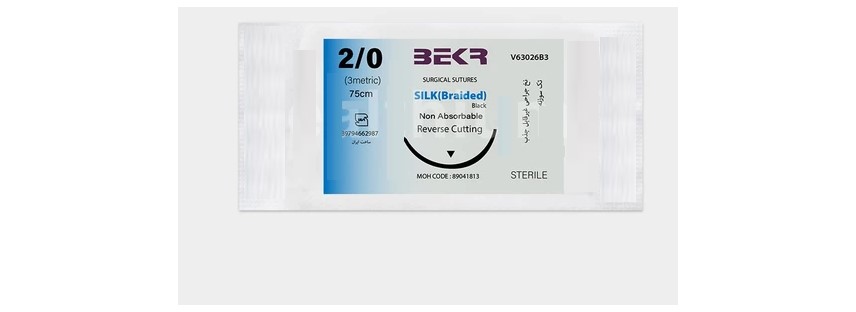 نخ بخیه سیلک بکر مشکی رنگ بوده و دارای قطر ۲/۰ (۳ Metric) و طول ۷۵ سانتی‌متر است.