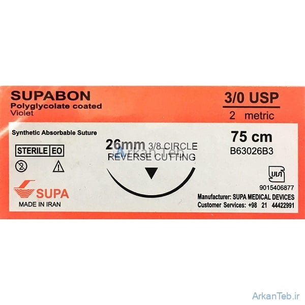 نخ جراحی سوپا ویکریل(سوپابن) 3/0 (3.0) راند سوزن 26